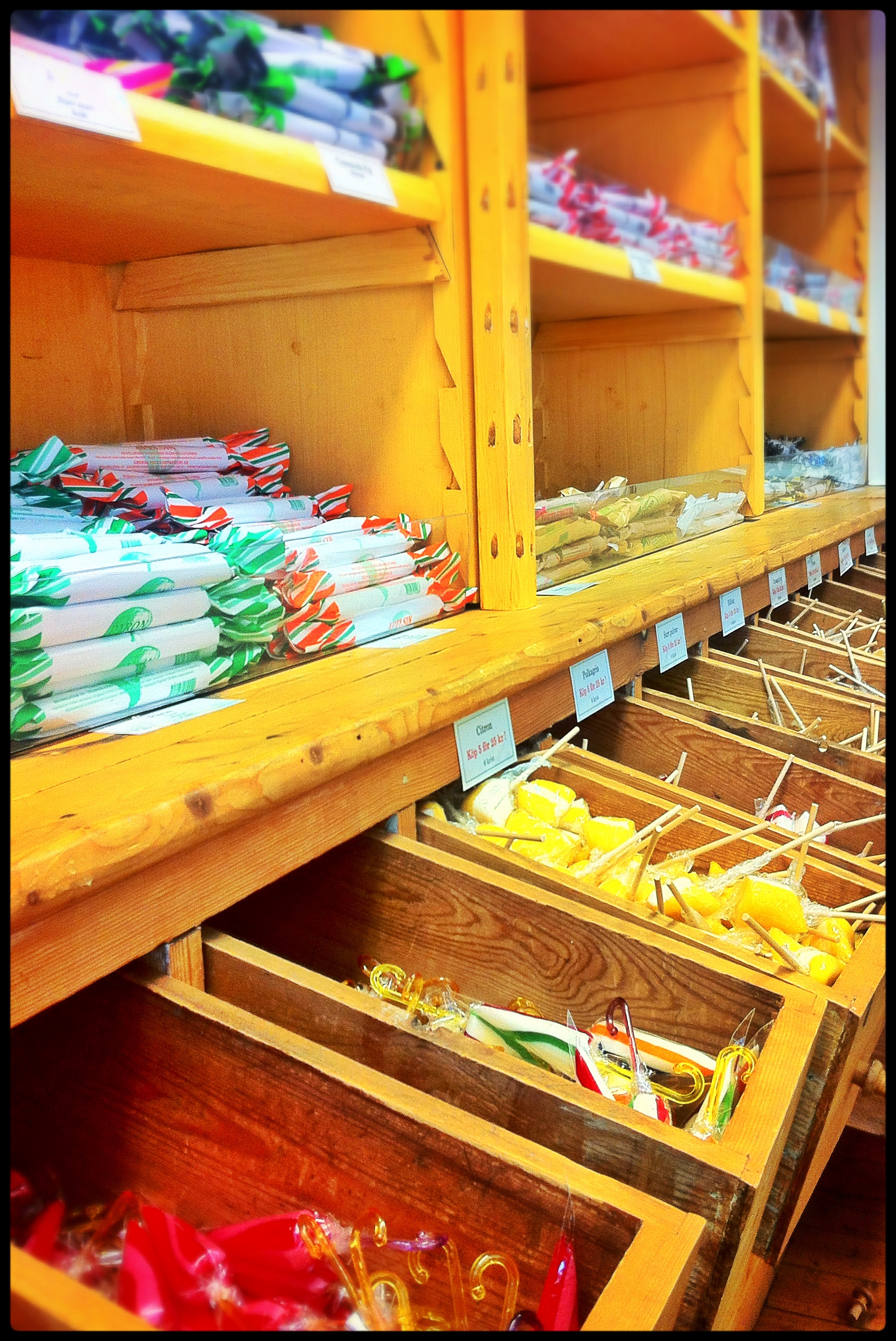 Gränna with its polkagrisar, blue sky, lake Vättern, and quaint streets, was the perfect stop on our family trips down through Sweden into central Europe. We took a long time choosing one or two bright-colored bars. Oh the luxury of adulthood and own money! Today I failed to choose and ended up with quite a bunch…