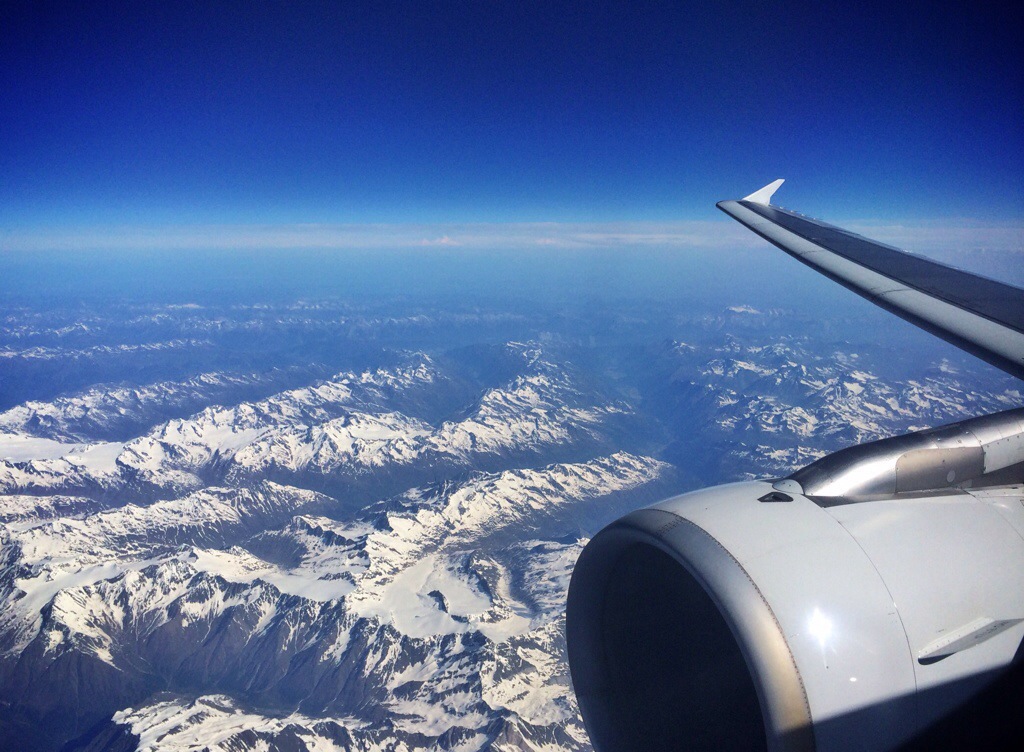 Somewhere down there in the thin green valleys between the snowy peaks cows go out to morning pasture, eagles circle over mountain meadows, people brew their first cup of coffee of the day, and another summer day begins in the Dolomites.