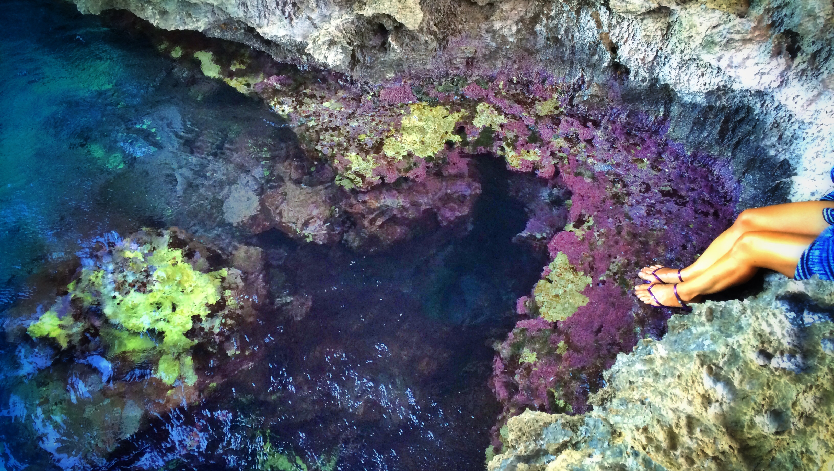 We hopped off the boat at a lush palm beach. A stream ran through the beach sand, down into the ocean. The water was cold and fish darted around dodging our bare feet as we crossed. We followed the stream up into a leafy forest where it widened into a little river. The water was green, as if the bottom was covered in emerald sand.