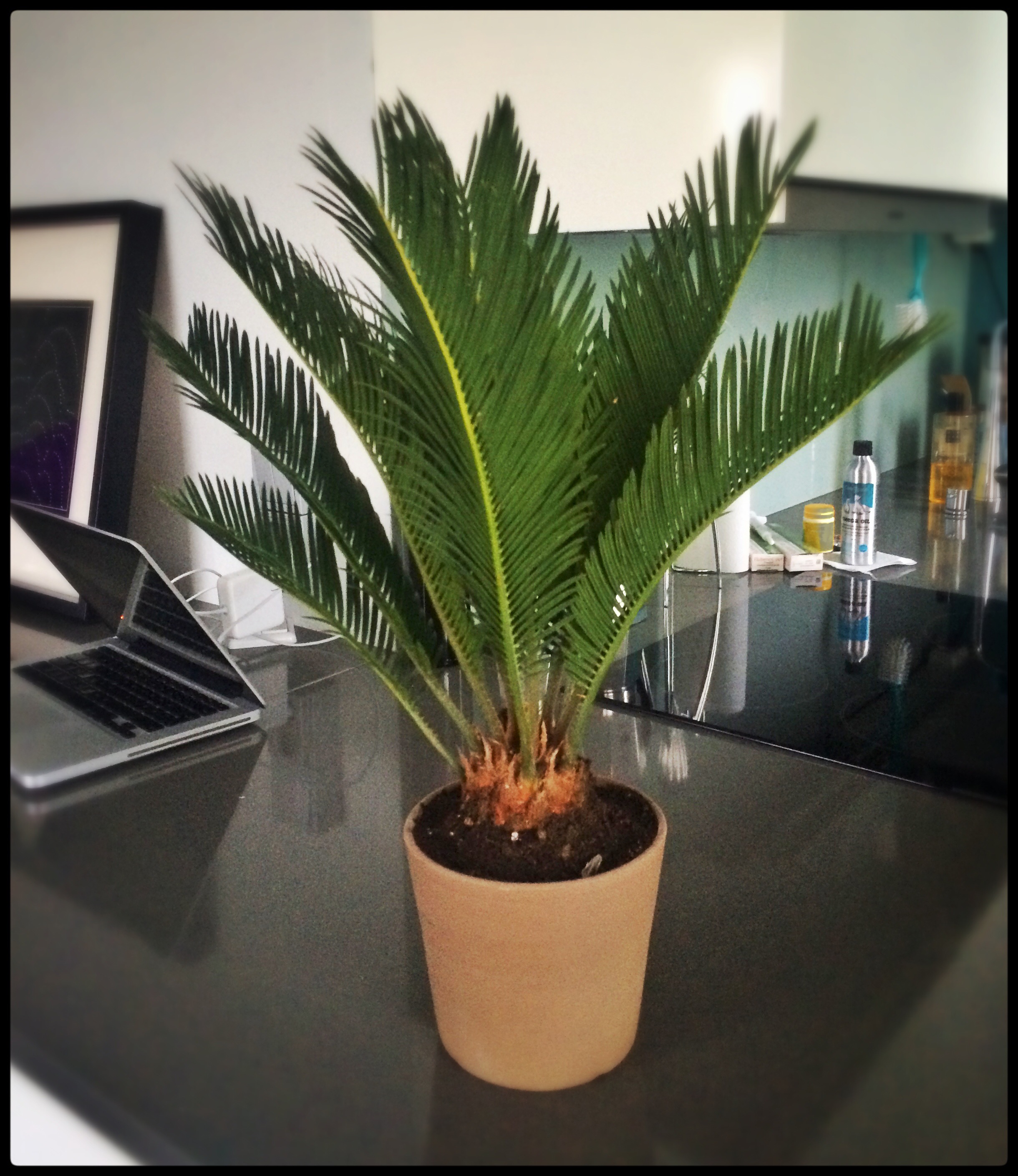 There it is, standing nonchalantly on my kitchen counter. Disregarding the clutter and the snow outside, this Cycas revoluta proudly stands as a messenger from 250 millions years ago. Yes, before the dinosaurs. What a joke, then, that I bought it at Ikea, that paragon for modernity and human everyday life, instead of a specialty garden shop offering a more worthy handling.