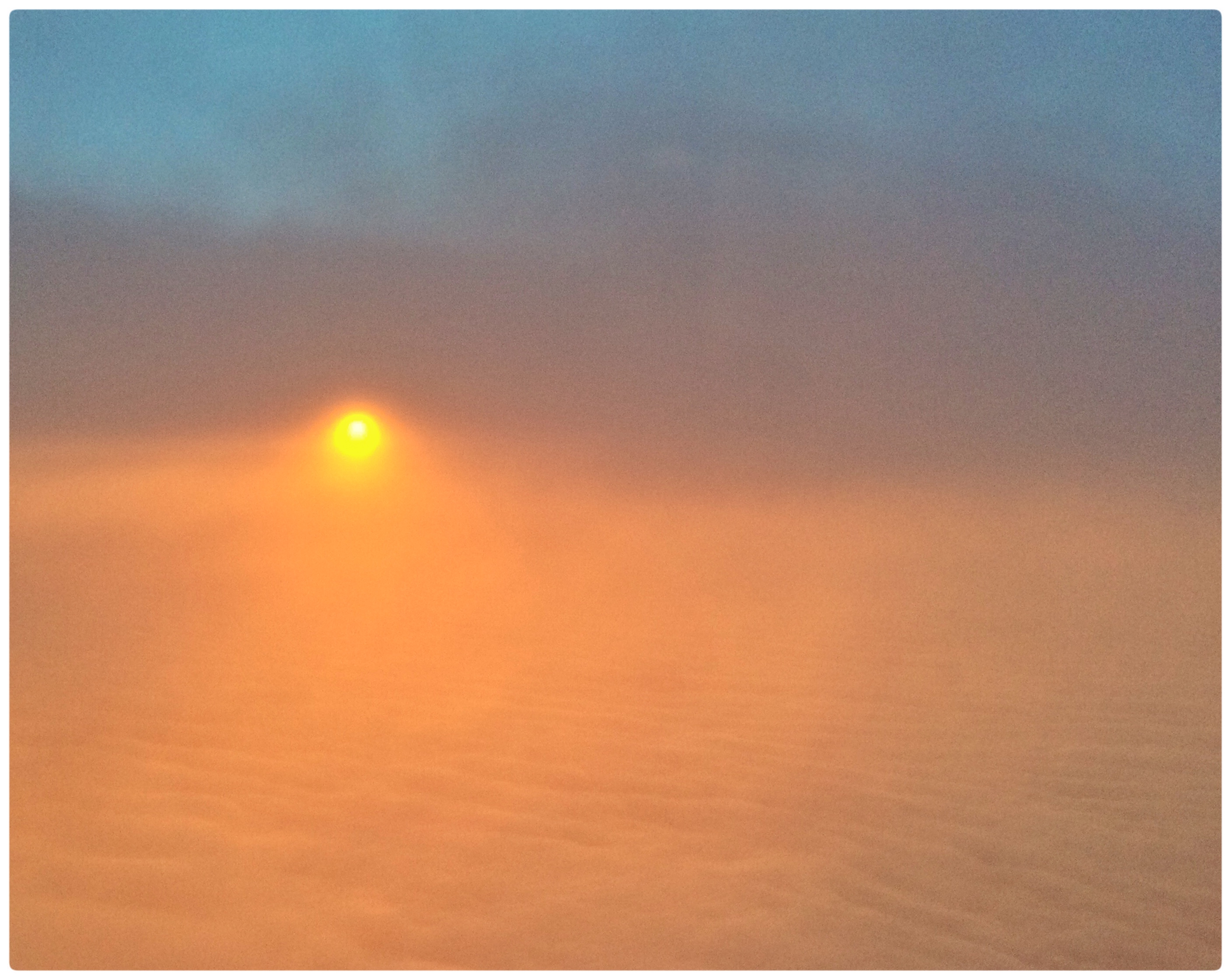 And so, as we rose above the clouds this stormy morning, we saw the most singular sunrise. Light battling the clouds. When it could not shine through, it shone underneath, covering the lower layers of cloud in red velvety light. And finally the clouds had to give in, and we saw a shy little lemon yellow December sunrise. sunrise-2(Somewhere above the Baltic Sea; December 2015)