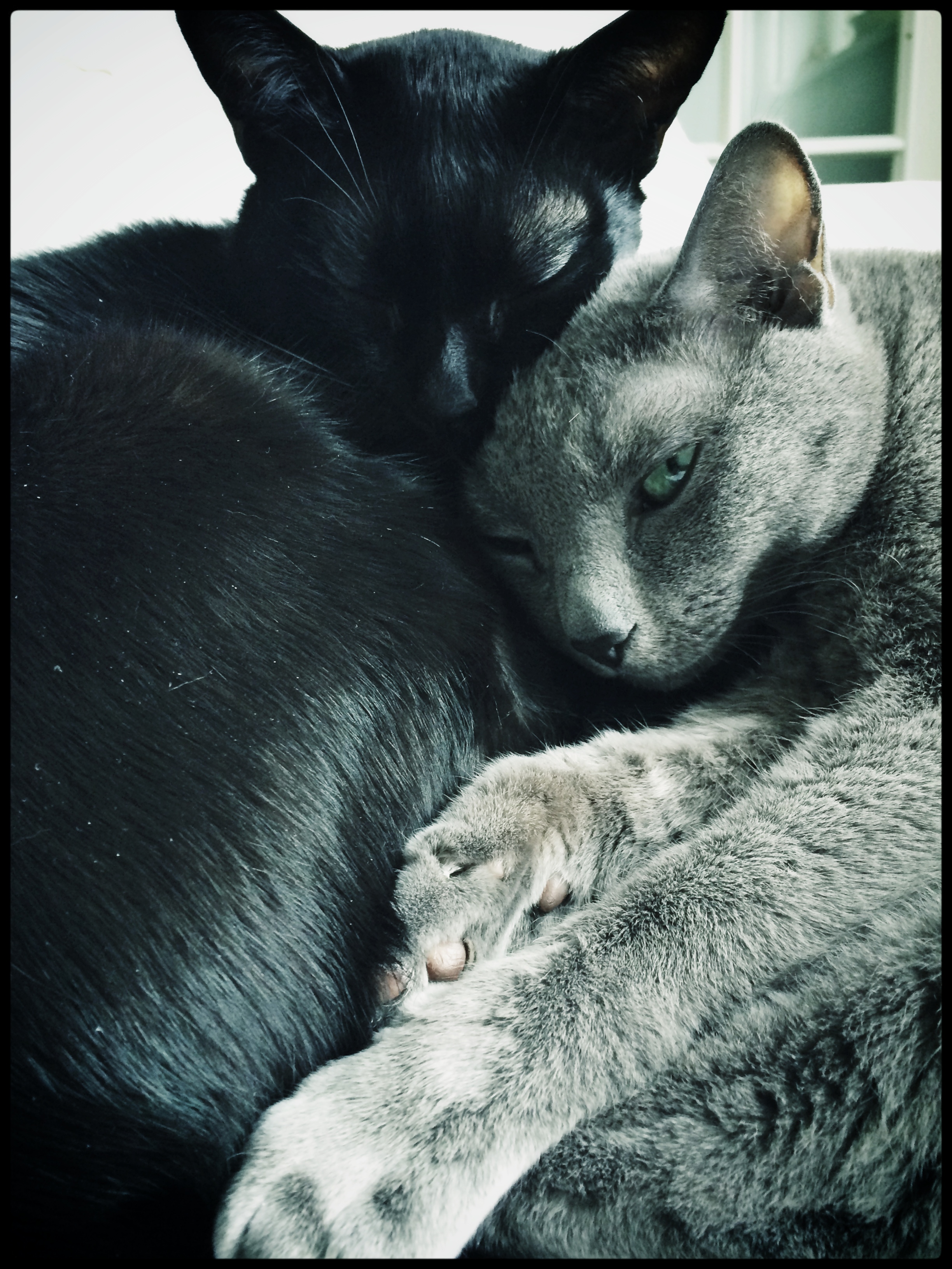 Between the airmiles and meetings and deadlines it is imperative to find the baseline, to sleep, and to enjoy waking up late. My idol is Cassandra the Russian Blue, who sleeps about 20 hours a day, usually curled up against her friend Ramses the Bombay. And when she is not sleeping she is all concentration: from the tip of her nose to the tip of her tail she focuses on one thing only at a time. No sidesteps. Just results. And then more sleep.
