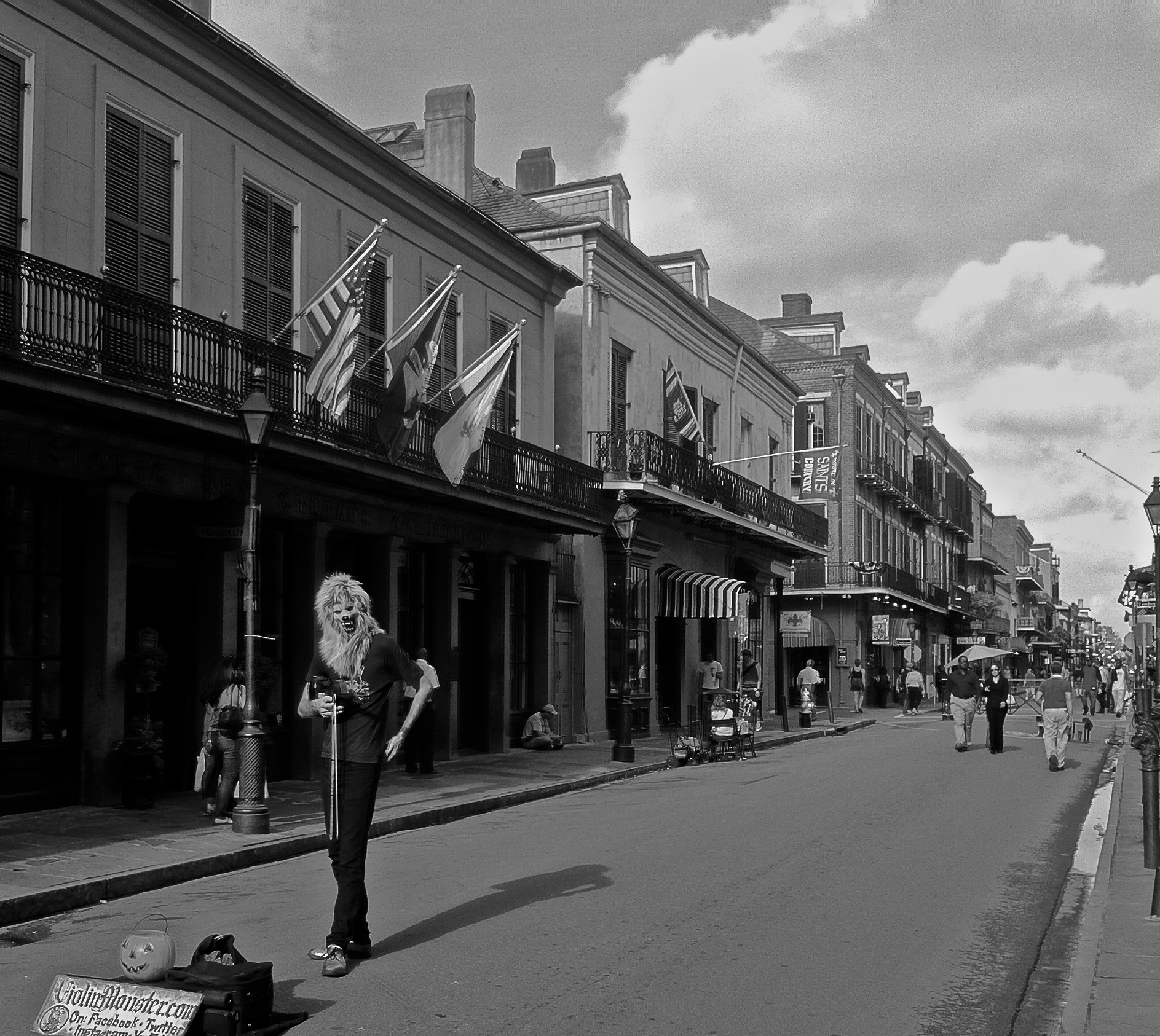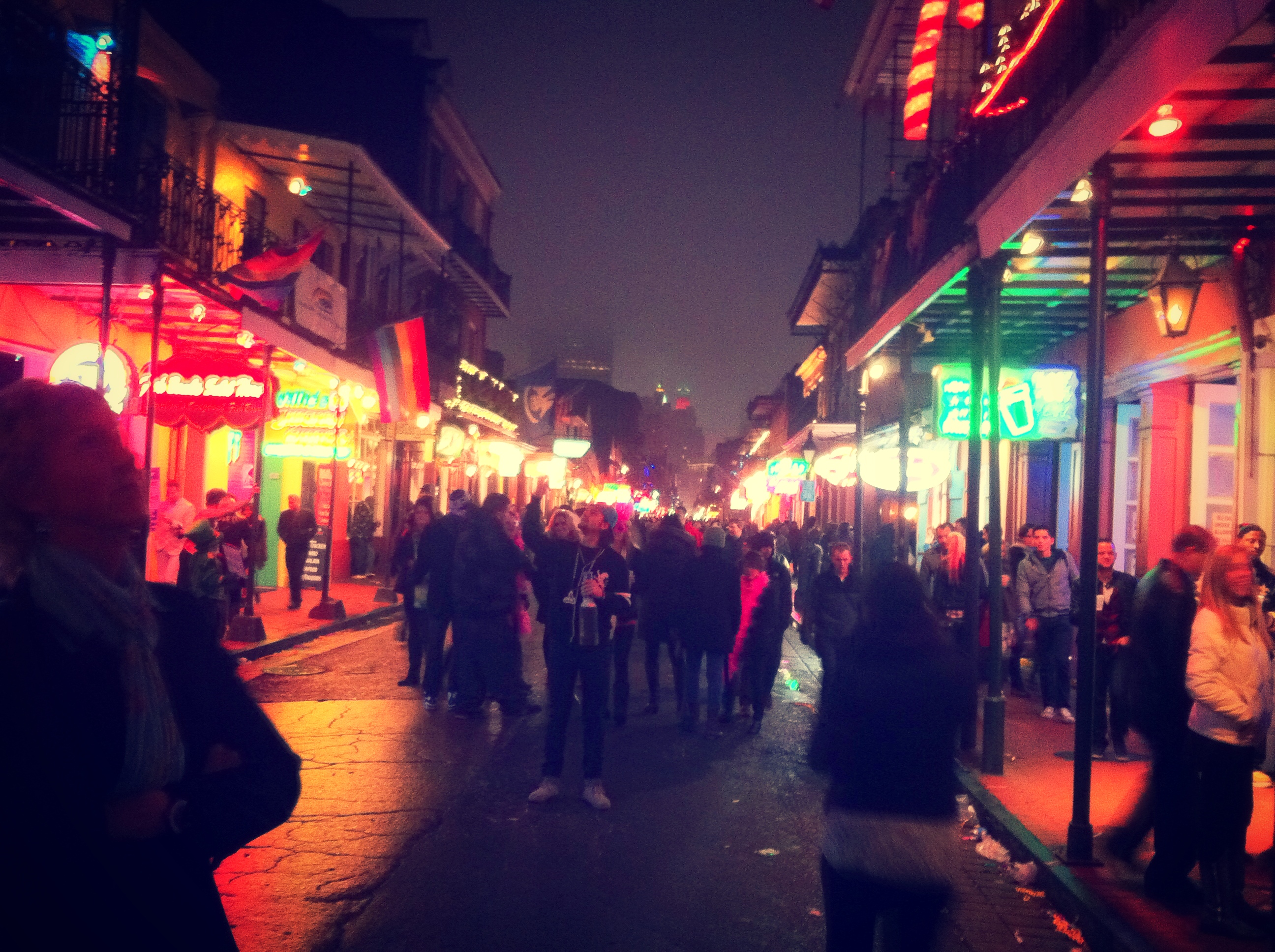 We strolled down Bourbon street, lost in film noir scenery. Neon lights and shadows surrounded seedy bars, where night people searched for the spirit of life, or tried to forget the very same. Never-minding the shades of craze between the Dungeon and strip clubs, we slipped into the Preservation Hall to witness a bunch of age-grayed cool cats jam the night away.
